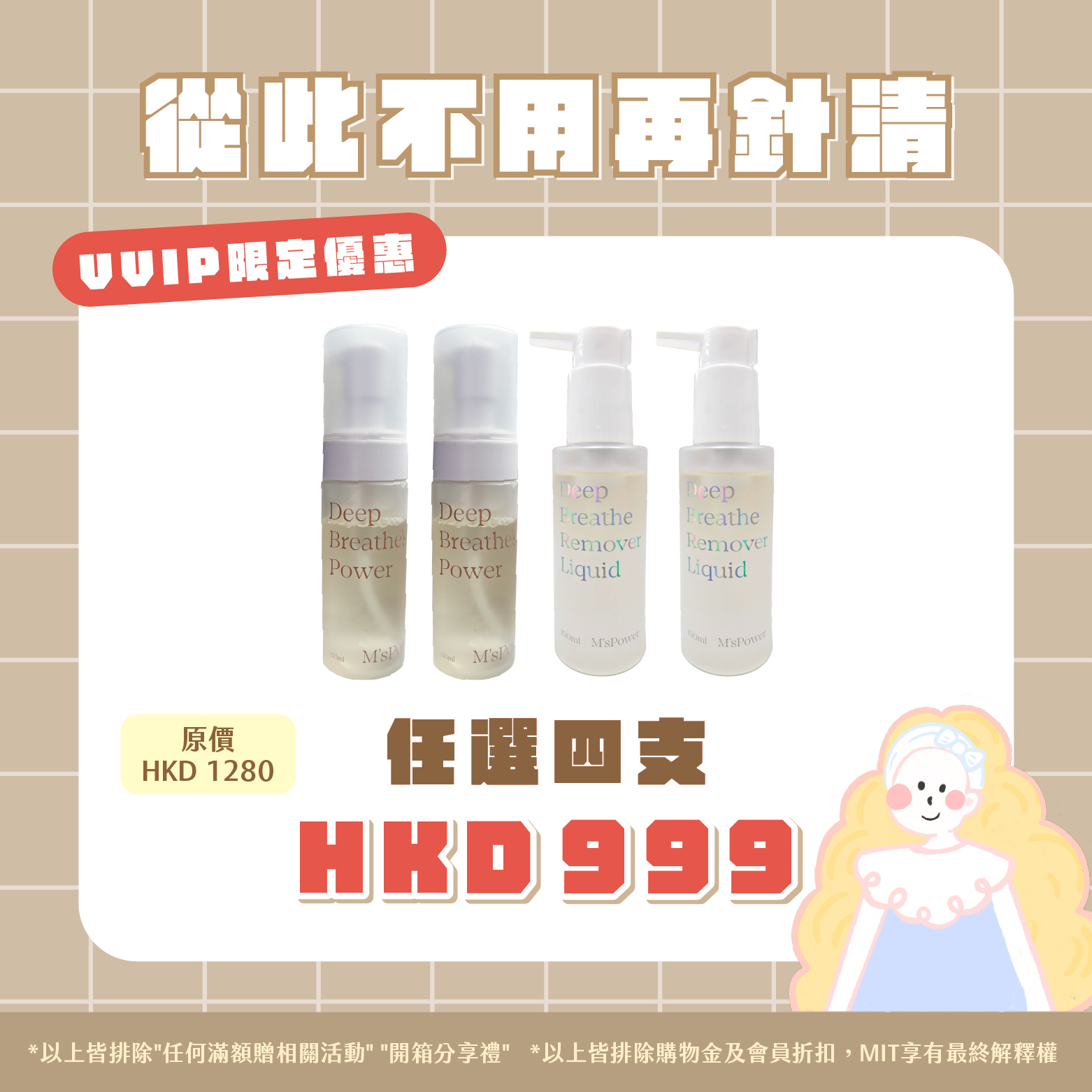 卸洗任選四支 VVIP-HKD 999;VIP-HKD 1080