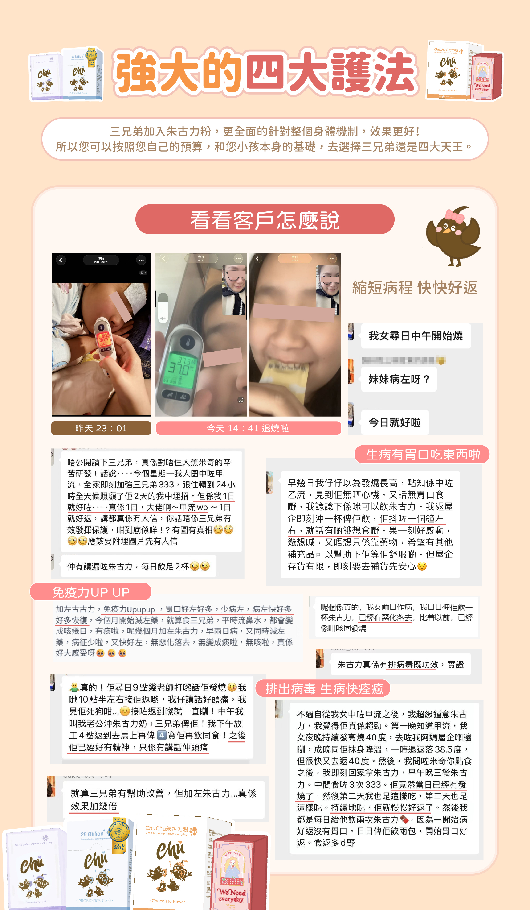 四大天王 = 免疫三兄弟 + 排毒補營養朱古力粉